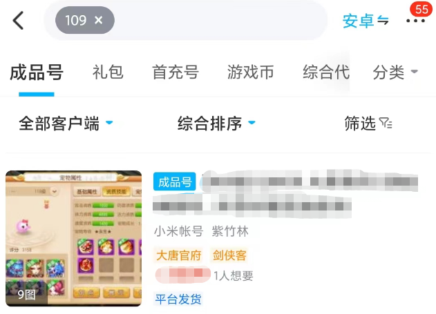 在交易猫当中梦幻西游可谓是“明星”游戏,单是成品号源就超过几千个,像是提到的109满修号价格基本也就在五百左右,且玩到109级本来投资就不少,五百块钱就能买到已经相当划算啦,而且多半账号还会带一些成品宝宝和大量资源,买家上号后也有继续发展的空间,要比毕业号有意思。
