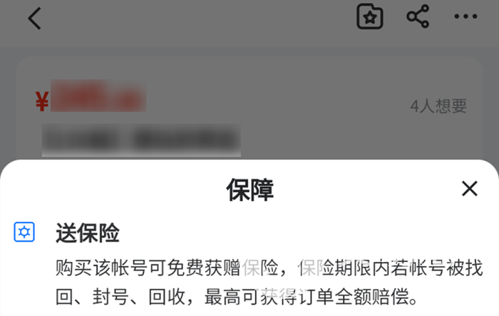 除了账号转移之外,如果商品带有送保险的标签,也是值得我们关注和选择的。这个保险的费用是店铺承担,其作用也是比较大的,因为不仅是覆盖了被找回的情况,如果购买到的账号被误封或者是回收,同样也是可以在保险期限内获取到赔偿的。购买带有保险的账号有一个明显的优势,那就是经过转移的账号是没有办法再次进行转移的,所以未来大家如果要出手,只能把自己的号卖掉,但是买到带有保险的账号,未来将这个账号出售就可以了,不需要卖自己的号。