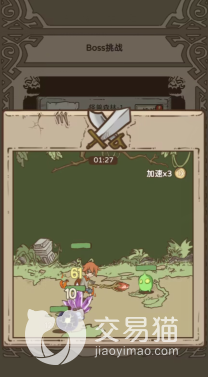 那就是进行boss挑战,这个只要我们的角色等级达到了挑战的标准,那么我们点开主页面上的“boss挑战”就可以直接攻击boss了,如果角色打的太慢的小伙伴还将上面的“加速”调到3。