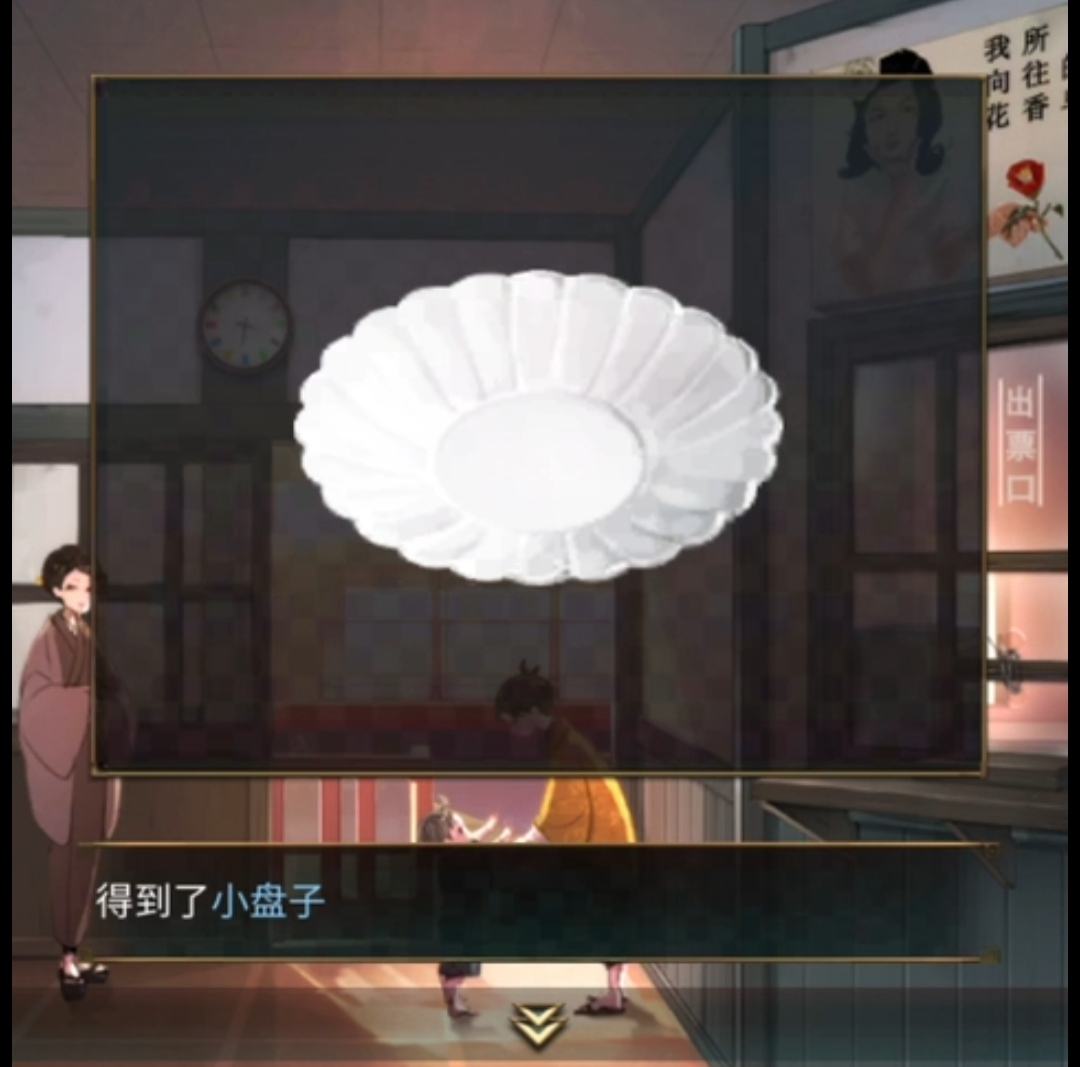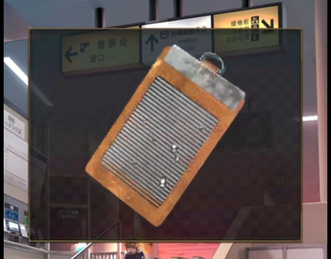前往第二关,得到了把手,一个笔记,折纸,用剪刀把折纸剪开,得到一个花的形状。自动售票机通电了,输入密码270打开了。里面有一块抹布,根据密码本,推出下一个字母是yongtai.得到了车票,车票已经签发了,勇太是一个经常和她做东西玩的人。