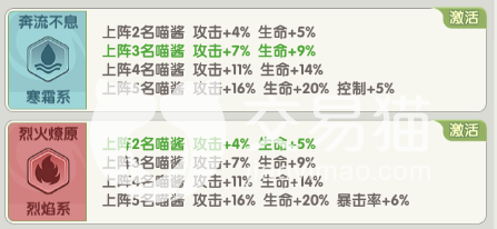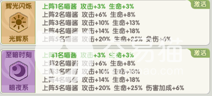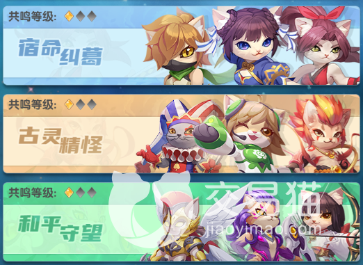 喵灵共鸣是为神殿之上,是对应不同的类型的三只猫咪卡牌,其卡牌达到5星之后,就可以激活一个新的功能,随着升星越多,带来额外的属性也会越多,激发的属性都会展示到卡牌属性面板上。