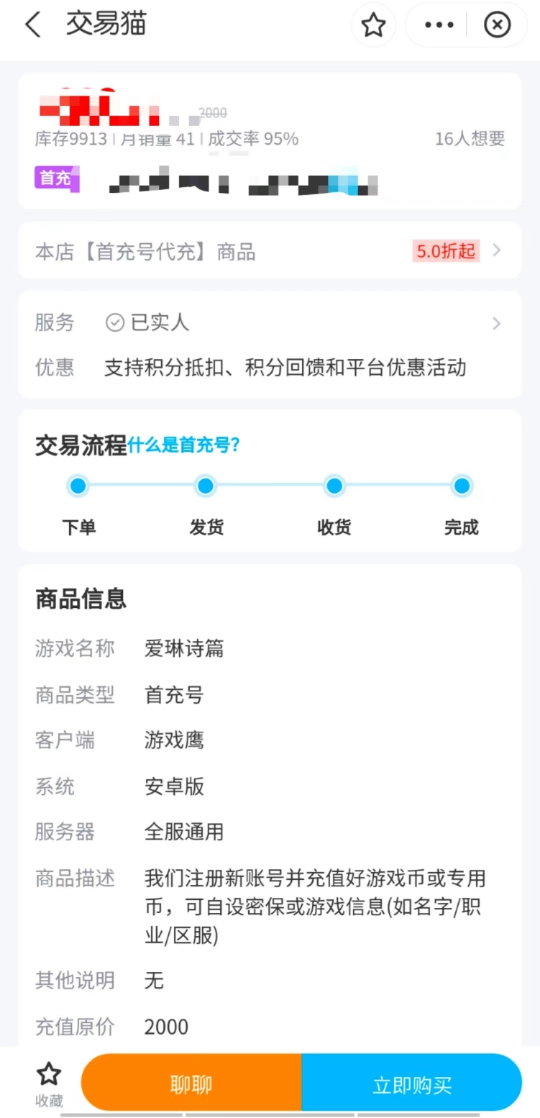 以上就是小编收集到爱琳诗篇首充号去哪买靠谱的全部信息,交易猫不仅可以帮助大家买到自己想要的账号,还可以帮助大家去出售自己的账号,如果你也有暂时不需要的账号,同样可以放在交易猫当中出售,用这笔钱去打造自己最强的账号。