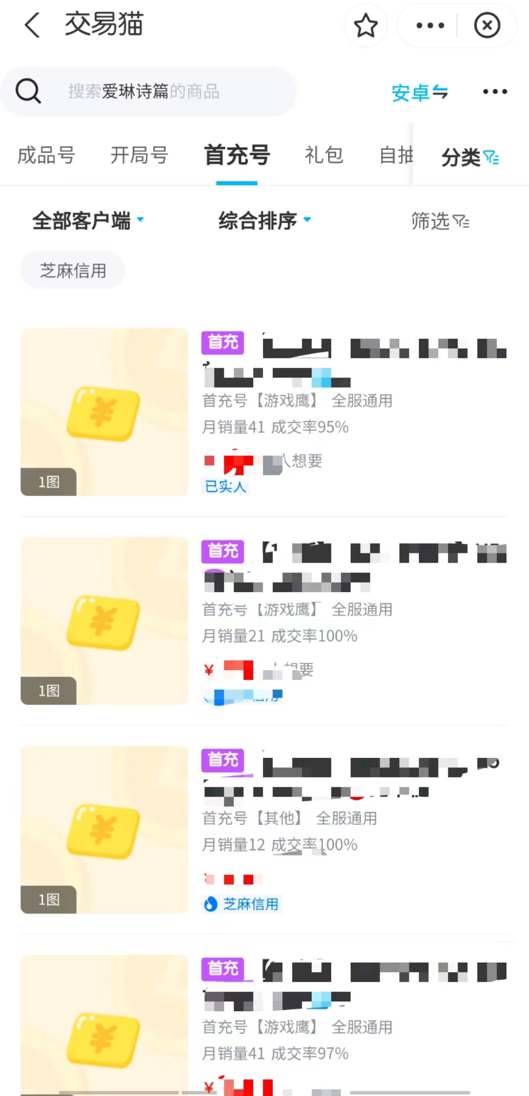 不过交易猫可不仅仅有首充号,作为一个大型的游戏账号交易平台,交易猫不仅有各种不同种类的爱琳诗篇账号,还有大量不同游戏的账号,不管你玩什么游戏,都可以在交易猫当中搜索,找到自己最喜欢的账号。