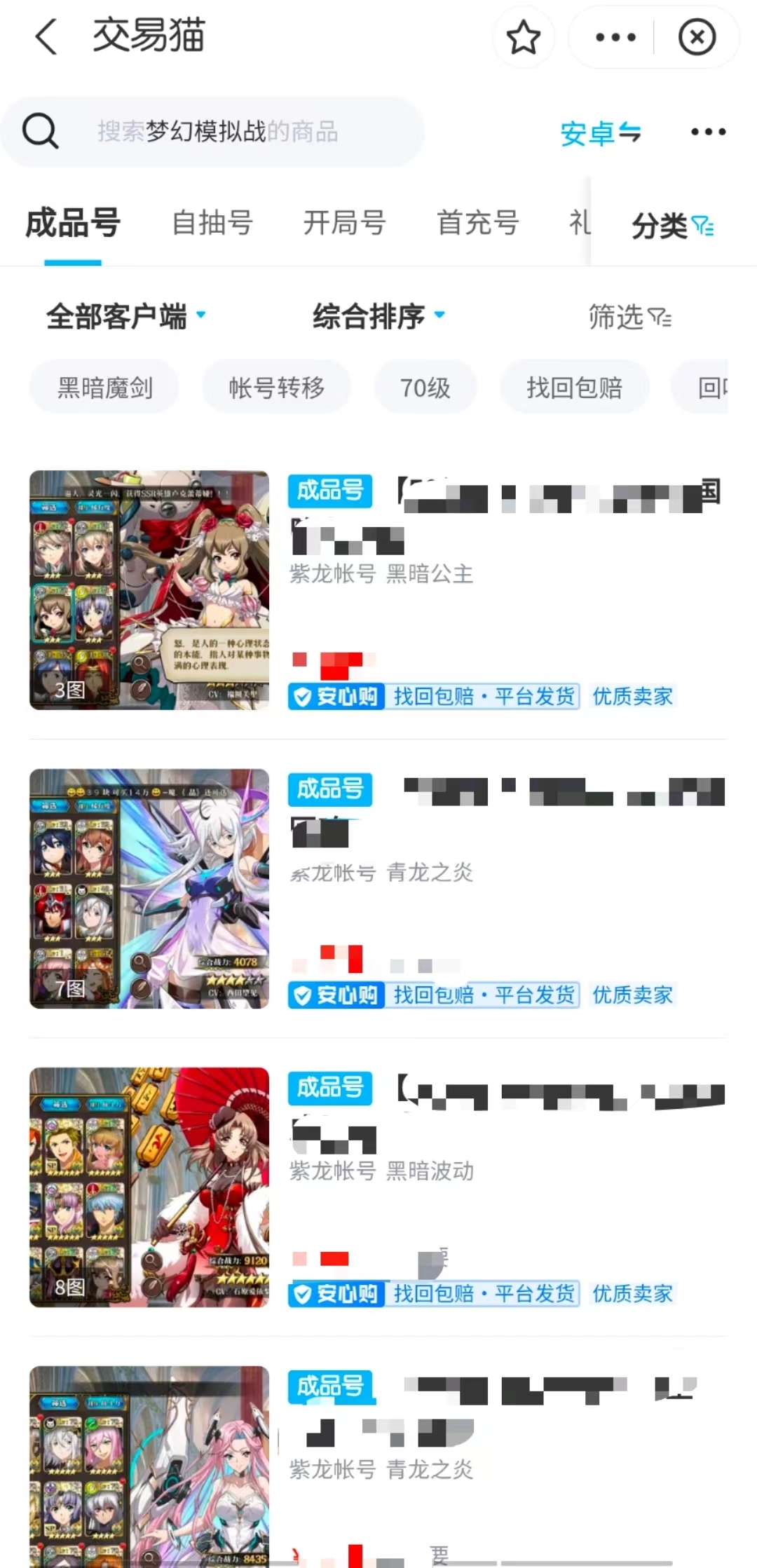 以上就是小编收集到梦幻模拟战小号哪里能买到的全部信息,大家需要注意的是,除了要主要注意账号价格和信息外,一定要关注账号上是否有验号和安心购的标志,因为只有部分商品支持安心购和找回包赔服务,如果没有这这两个标志,大家一定要谨慎选择。