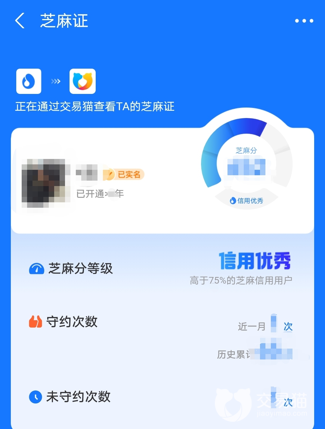 每一位卖家都通过了真人实人认证,并且平台接入芝麻信用,许多人都授权了芝麻信用,如果卖家卖货有不诚信行为,会相应的扣除信用分,这对卖家是一个不小的约束力。各位买家可以在商品详情页查看对方的芝麻证,芝麻证上能看到芝麻分数、芝麻分等级、守约次数、未守约次数等,有助于买家分辨卖方的可靠程度。