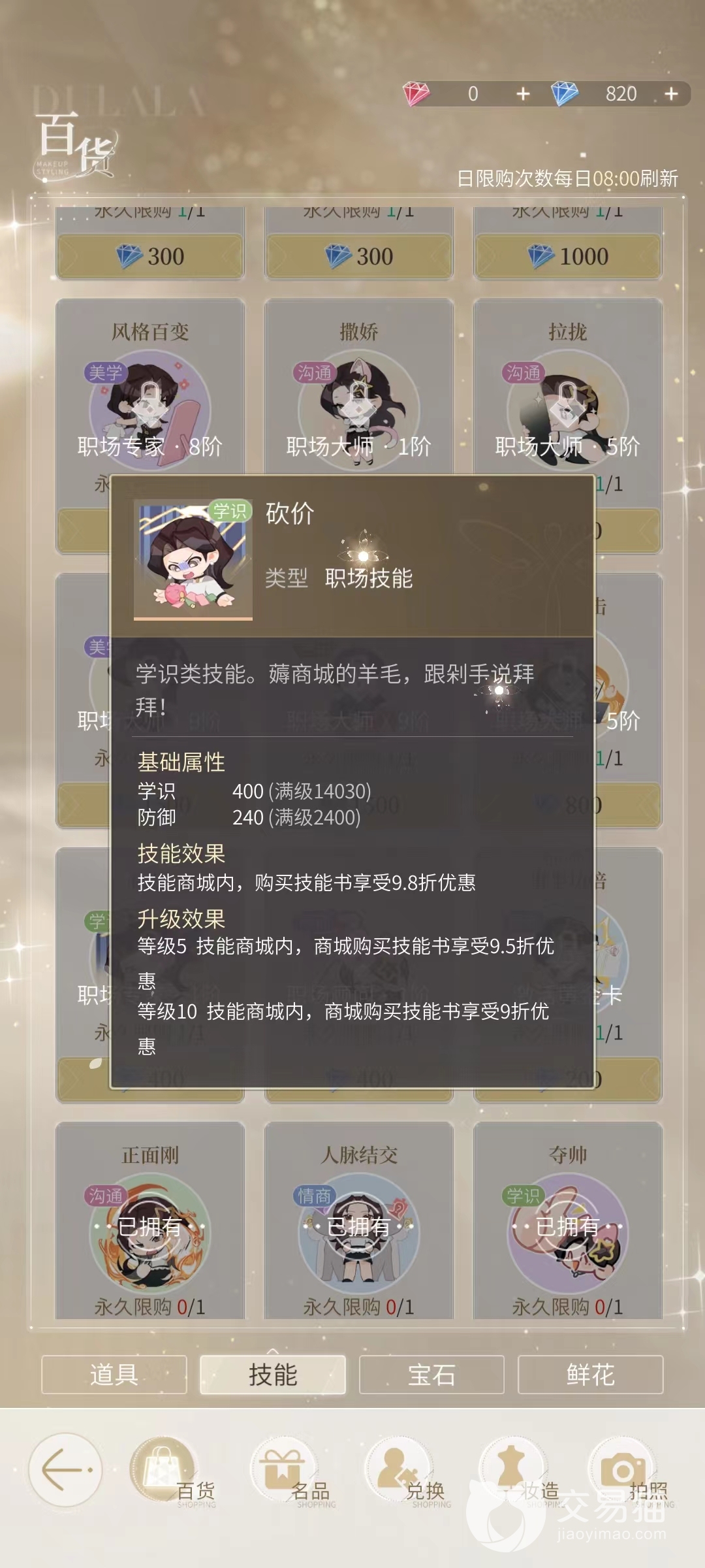 技能效果:在技能商城内,商场购买技能书可享受折扣优惠。