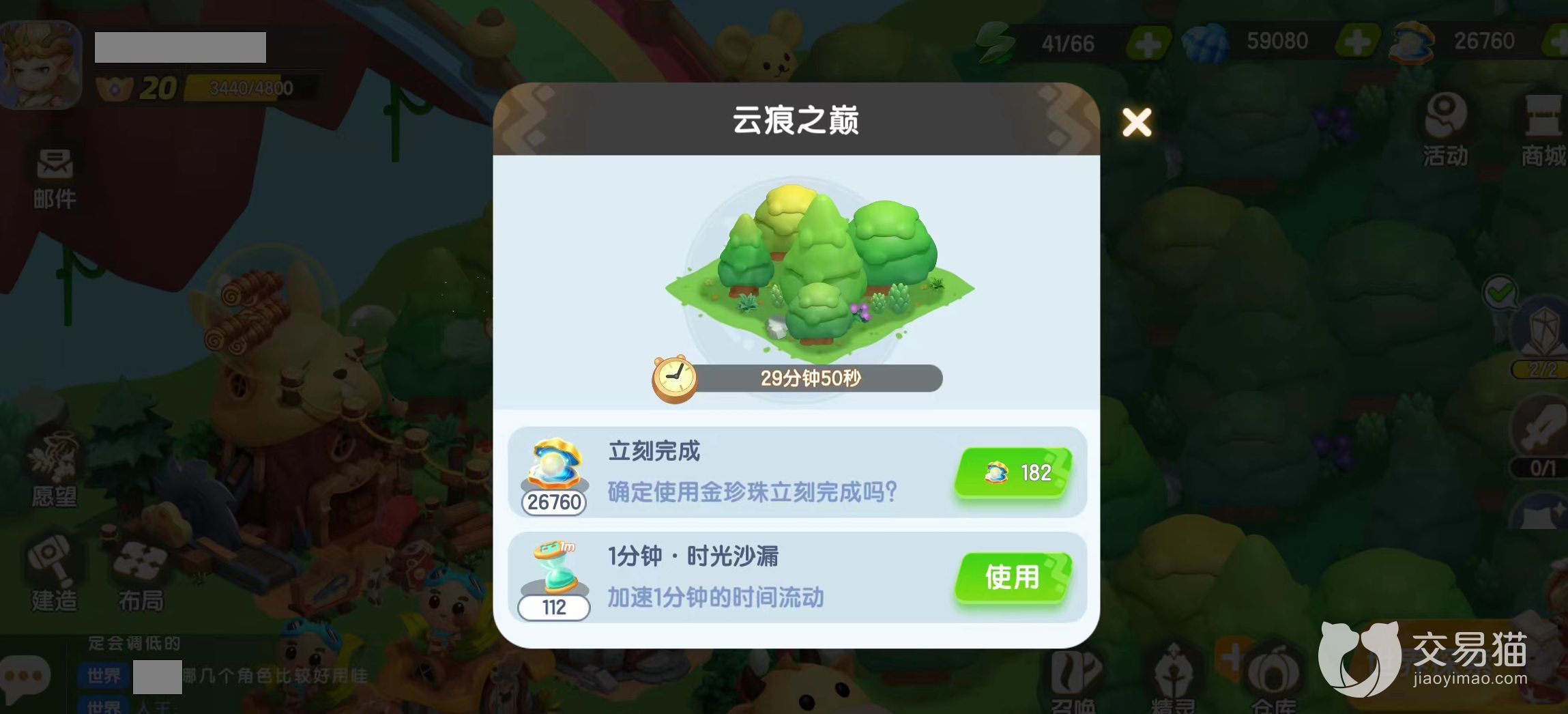 我们在地图上看到有小加号的树木,就是可以被清除掉的树林。清理树林需要材料,普通的材料玩家可以自己制作,另外轻羽柱子和轻羽云砖这两种比较难获得,是通过许愿之井完成角色心愿获得的。随着领土的面积越来越大,清除树林需要材料也越多,材料实在不够的话,玩家也用金钻石去补足。