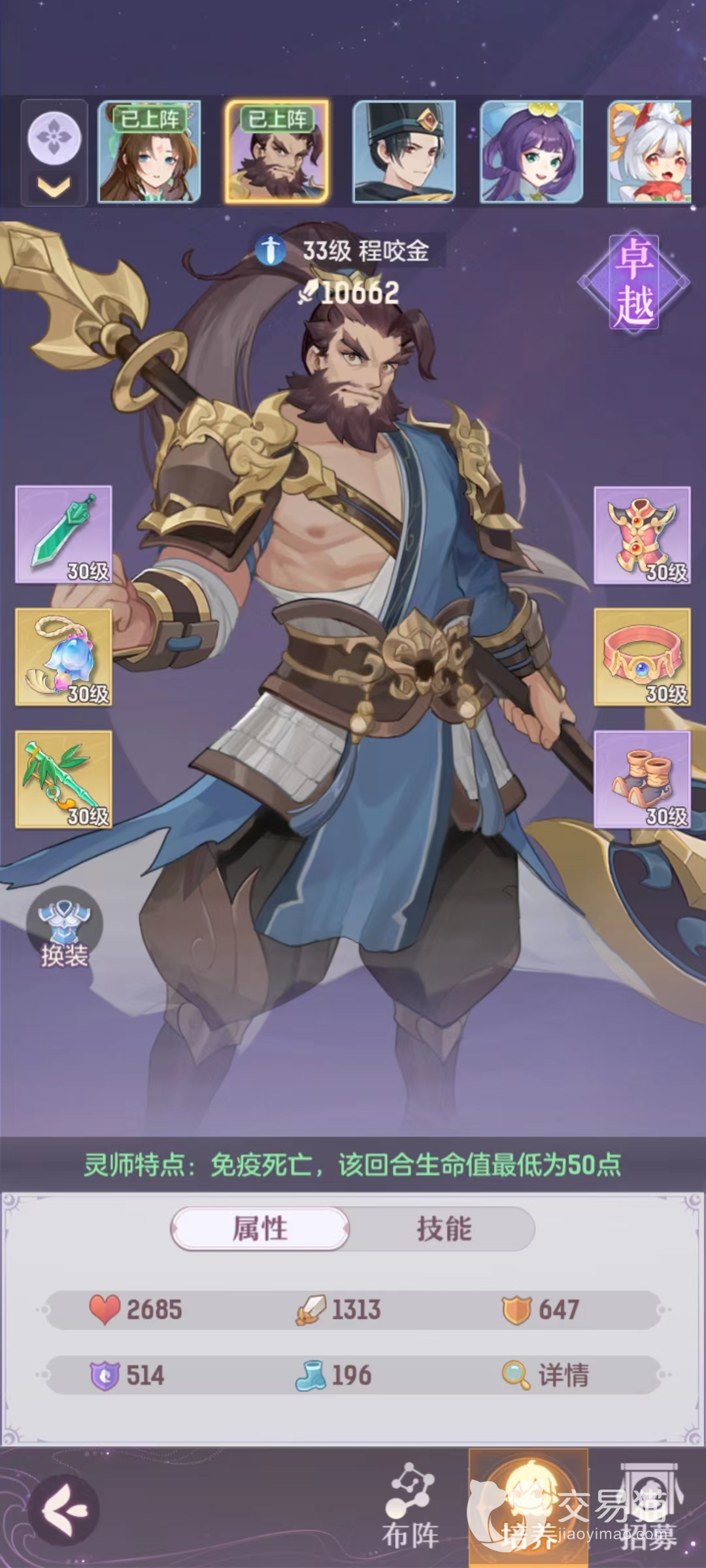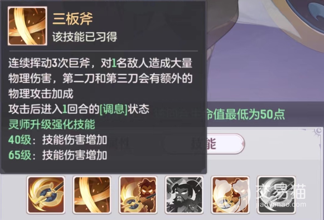 系统赠送的伙伴并非就不强力,在判断的时候往往需要根据实战技能来确定,而且程咬金属于紫色卓越品质的灵师,在效果上要比前期的蓝色好很多,虽然没有无双伙伴属性高,但也是中前期很热门的选择。拥有自己的技能和特点,第1个技能半路杀出,利用巨斧伤害一名敌人,属于单体伤害类型,第2个三板斧,连续挥动大斧对敌人造成高额单体伤害,后面的两次攻击还有额外附加,在攻击后会进入到一回合的休息阶段无法行动。所以在选择目标的时候尽量能够秒掉敌人,这样效率会更高。