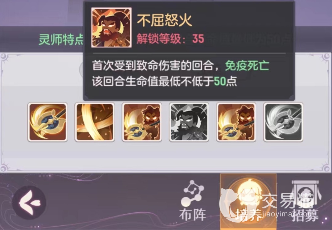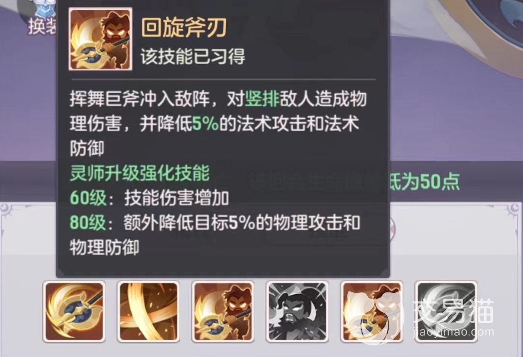 第3个技能回旋斧刃,挥动巨斧冲进敌方群体中伤害竖排的所有敌人,并且能降低对方的法术攻击和法术防御,当提升到80级时还将额外附加降低物理攻击和物理防御的效果。这样就更加全面可以全面削弱对方的输出,这也就使得程咬金拥有不错的成长空间。除了主动技能外被动也很给力,第1个被动不屈怒火,当程咬金第1次面临致命伤害时可以免疫死亡。