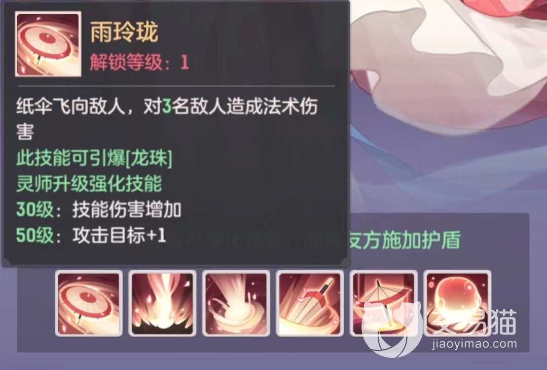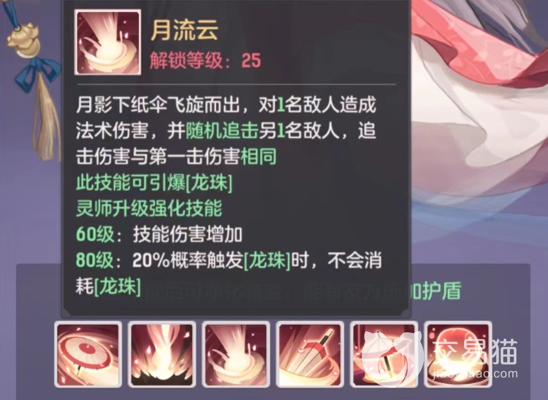 除了第1个技能雨玲珑可以触发引爆龙珠之外,技能月流云同样有这样的效果,使用之后伤害一名敌人,但是会随机再选择一个进行追击,造成两次相同的伤害。如果伤害目标身上带有龙珠效果,可以直接引爆,技能等级提升后还将获得额外状态,有几率在触发龙珠时不消耗龙珠层数,也就是可以重复触发,这样就提高了红拂女的持续作战能力。