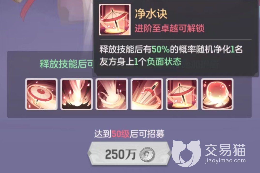 除了主动技能外还有三个被动,第1个效果是当红拂女在受到伤害时有机会触发一次普攻反击,第2个在释放技能后有几率为友方目标附加净化效果,最后一个可以在回合出手的时候为友方伙伴添加护盾吸收伤害。从这些效果可以看出红拂女还是非常全能的,既有伤害又有净化还有护盾效果,属于非常全面的伤害辅助型伙伴。这也就使其成为了万金油选择,和各个门派的主角都能搭配起来。