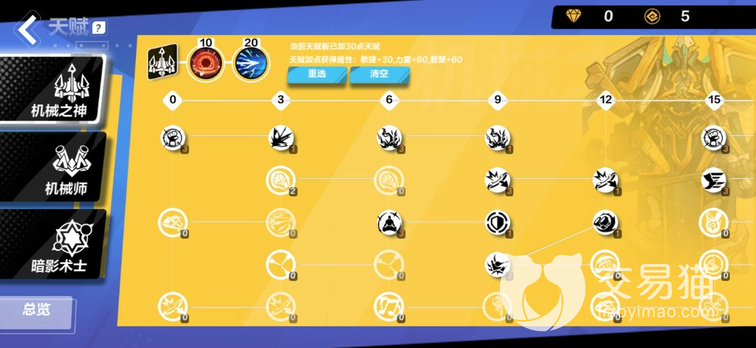 1、第一排:选择机械之神,把召唤物伤害的都点上,其他的无论是点侵略性,还是点召唤物技能等级都是可以的。