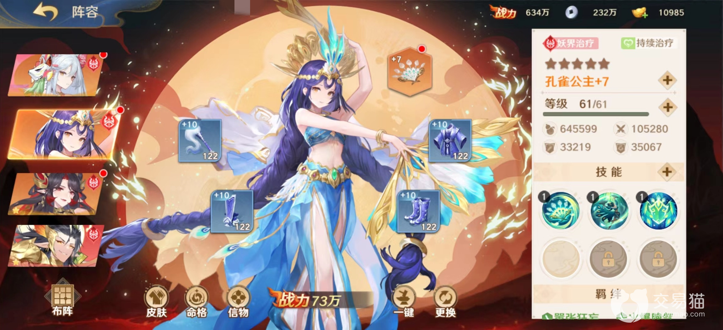 从这些技能效果就能看出孔雀公主对团队的主要贡献包括强力治疗持续加血,这样就为整个团队带来了非常可靠的续航能力。再加上当获得法宝惊鸿雀羽扇之后,每次释放技能自身都能恢复一点怒气,这样就保证了自身的续航可以频繁加血。孔雀公主也能很好的融进妖族阵营里,尤其是在红孩儿等神将为对方添加灼烧效果后更是能增加孔雀公主的存活能力,作为一名辅助,能做到这些已经非常完美。所以小编认为这名神将完全可以当做妖族阵营中必须要上场的选手。