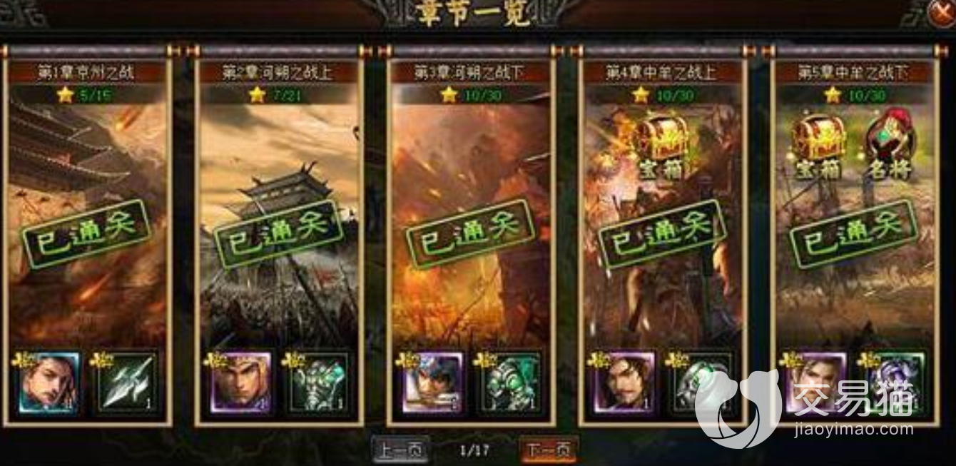 每一章节可以产出最高价值的装备,会在章节一览这个列表中给大家显现出来,一目了然。如果新手特别需要某个武将或材料的话,可以在这里查看自己所需要的对应关卡,也不失为一种好办法。