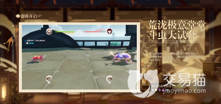 小游戏还有斗虫大赛,斗子哥最爱的稻妻斗虫的活动这次终于实装了,玩家可以在原神当中挑选自己喜爱的虫子和各种npc展开斗虫的活动可以说是非常的有趣了。