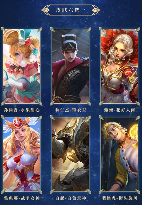 其次,s30赛季上线的三款全新战令皮肤,分别是80级暃的星界游侠、1级嫦娥的暖冬兔眠和玄策热力回旋的星元皮肤。这次暃的星界游侠皮肤整体的主色调是紫色,英雄周围加上了银河和星空的装饰,凸显宇宙力量的深邃与神秘。嫦娥的皮肤暖冬兔眠融入了星空和云朵的元素,有一种梦幻温馨的感觉,第一眼看上去和大乔的猫狗日记有点类似,十分可爱。玄策的热力回旋则采用了浅绿色和橘色搭配,活力满满,元气十足。除此之外,这次的永久皮肤六选一,还加入了孙尚香的水果甜心。小编觉得相对于其他几款皮肤来说,这款的性价比是最高的,毕竟优化之后这款皮肤的手感相当的不错。另外的其他五款分别为白起的白色死神,甄姬的花好人间,狄仁杰的锦衣卫,雅典娜的战争女神以及裴擒虎的街头旋风,以上全部皮肤的更新将于1月5日S30赛季正式开启后上线。