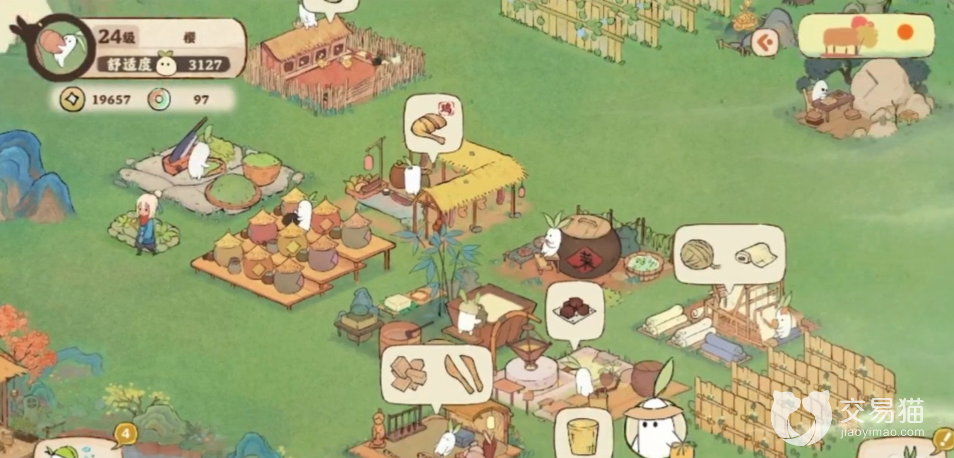 这款游戏最大的一个特色亮点就要数其中可爱的萝卜人了。当代各种作物成熟时,我们可以点击建筑物的页面,看到萝卜人一直在赶进度制作东西。这些作物的制作原料之一就是我们所说的楠木,我们需要去树林中大量采集来获得。