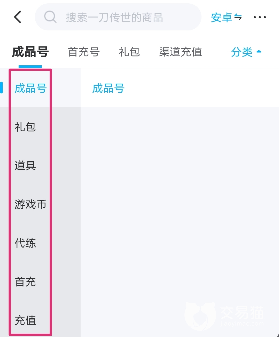 交易猫平台上目前支持一刀传世的成品号、首充号、礼包交易以及可以进行渠道充值,种类非常丰富,足以满足屏幕前小伙伴们的需求,小编推荐这款app的原因有以下几点: