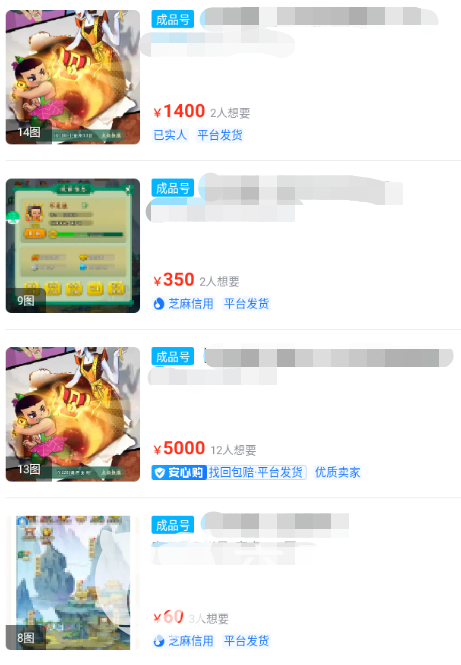 由于交易猫的平台名气很大,所以吸引了大量的活跃卖家,由此带来的优势便是账号品类异常齐全,无论您想购置的是几十几百块的账号享受实惠,还是想买上千块的账号一步登天,都能在这里找到对应商品。而且平台上的高端账号其价格也不是孤芳自赏,从上图中就能看出,哪怕是五千的账号也是有着十几人明显表达出想要意愿的,从这也能一窥账号的优质。