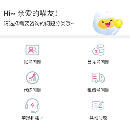 平台对于售后资讯这块,也是十分方便的,而且客服类型有着智能和人工两种,智能客服记录了平台中大部分的常见问题,除了账号交易的问题以外,租号,代练等板块的问题也能被受理,当然,如果您的账号已经发生找回或异常,也可以直接进行举报,填写一些情况之后,很快就会有客服进行受理,平台上的人工客服效率和态度都是很不错的。