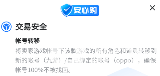 交易猫平台上的“安心购”服务能够提供多重保障,除了送保险和部分特定账号支持的找回包赔以外,还有一些端口会支持账号转移服务,享有该服务的账号,可以省去换绑时的麻烦,因为它将直接把卖家的账号数据转移到买家的号上,因此大大降低了交易的风险,当然,支持转移服务的端口并不是很多,所以大家需要灵活运用平台的筛选标签。