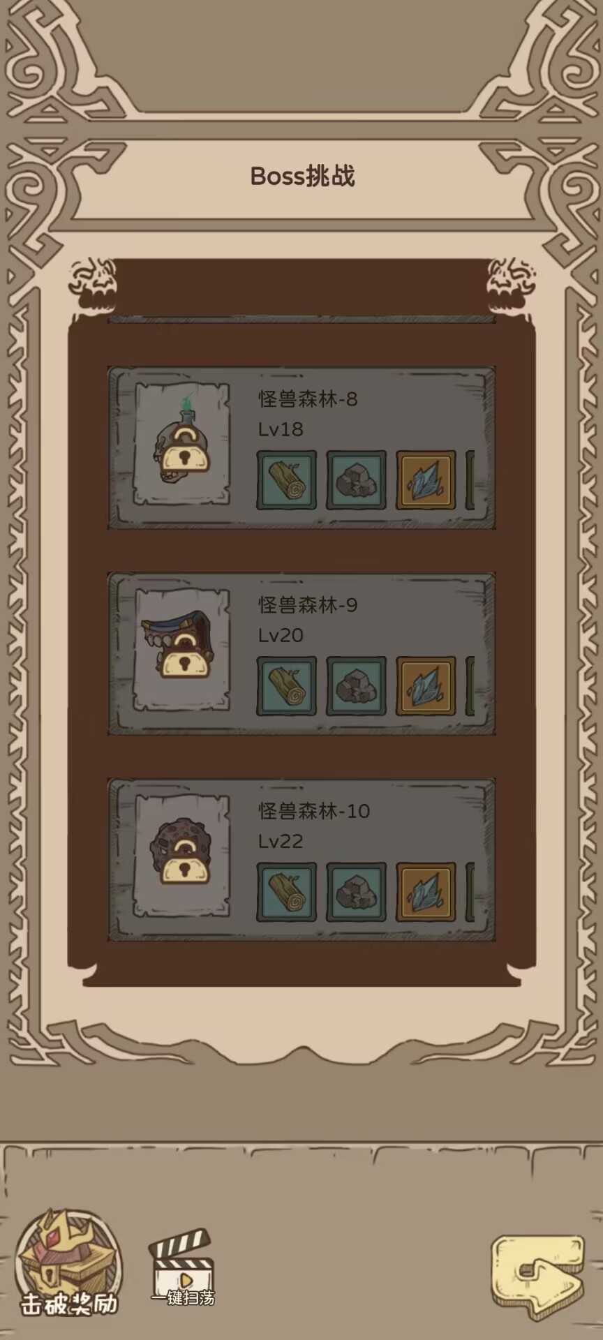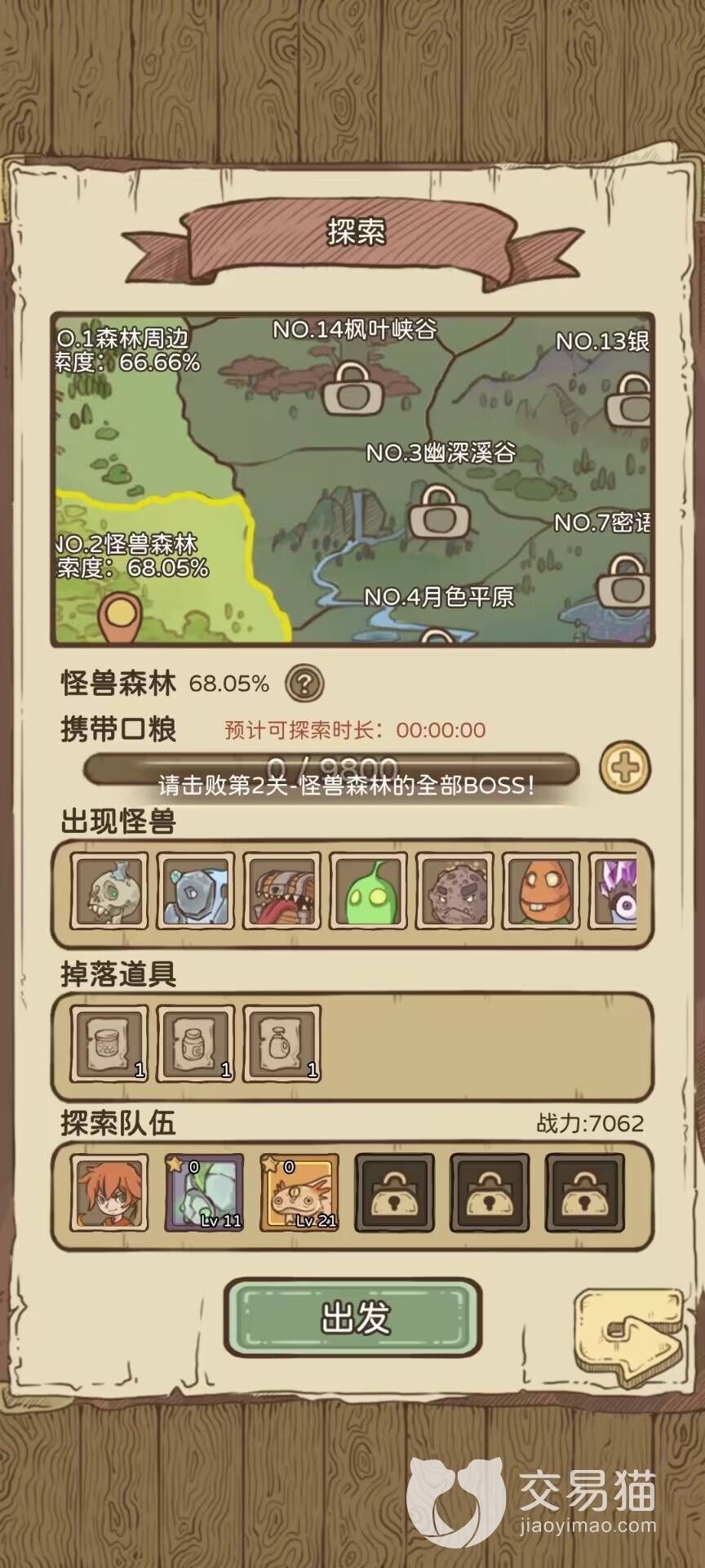 我们首先从游戏界面找到“探索”,然后里面会有很多张地图,我们要解锁的这个是第三张,所以目前要做的是先去通关第二张的地图——“森林怪兽”,并且需要击败里面所有的boss才可以。