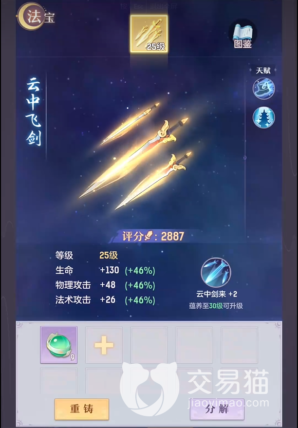 首先是物攻和法系门派,物攻的话小编这里比较推荐的法宝是“云中飞剑”,因为它在我们打出物理伤害的时候有几率触发飞剑,而且我们打出的物理攻击越多,触发的几率也就越大,法系的话,比较推荐“八卦阴阳镜”,因为这个法宝能够让我们在被攻击的时候将法术增伤进行一个叠加,被击打的次数越多增伤也会变得更高。