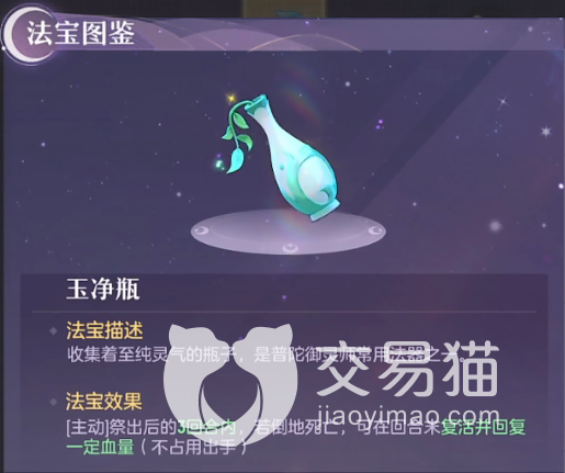 然后是辅助和封系,辅助系的分为两种,一个是“摄魂铃”,这个可以控制住对方妖灵的特效,然后是“玉净瓶”,这个是有复活的效果,比较适合在一些逆境下使用,而且这个法宝也可以用在封系身上,因为它复活以后可以在下回合一速来抢占先机。