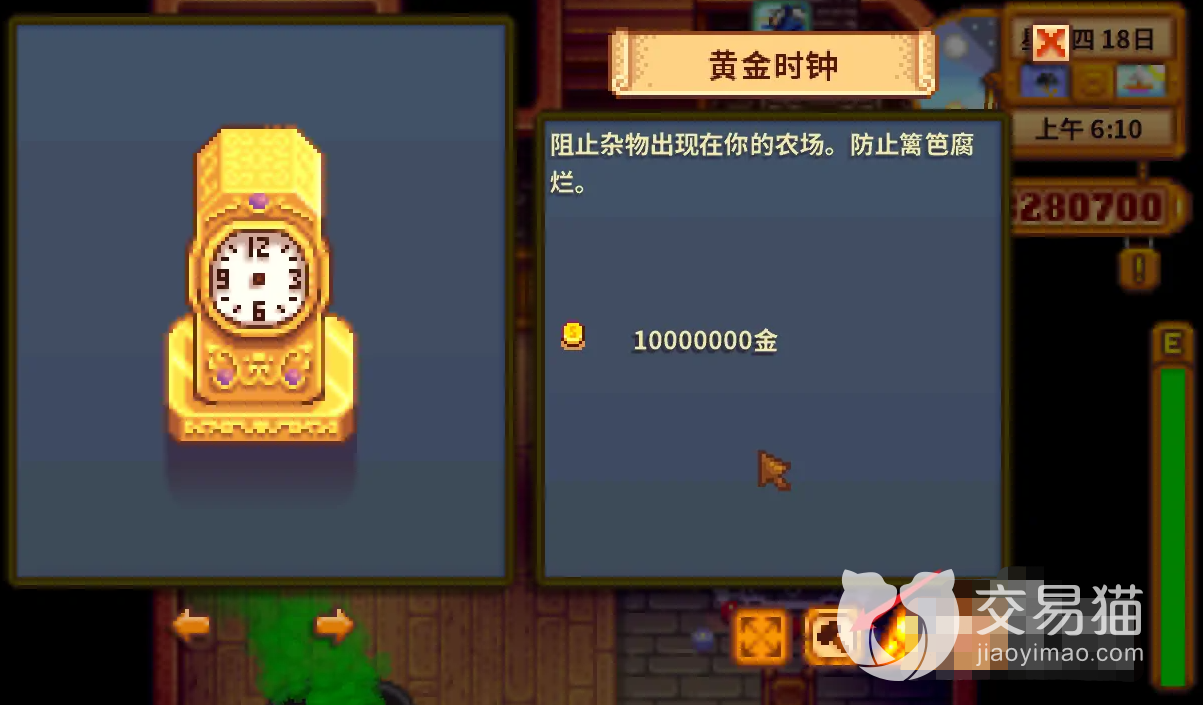 以上就是星露谷物语黄金钟在哪买,黄金钟获取方式介绍的内容,大家要是存够了足够的金币,也想要这个道具来保护自己的农场,就赶紧按照小编本期的流程在游戏中尝试获取吧,前期的任务解锁攒够钱币大家就可以获取了。