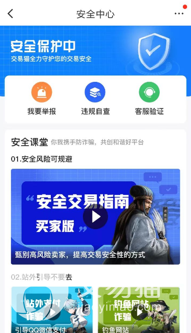 2、不过对于从来没有购买过游戏账号的玩家们来说,安全才是真正的第一问题。所以小编为了让大家接触这一个疑虑,推荐各位进入到交易猫app的安全中心,使用客服验证的功能,让平台去帮助了解大家想要购买商品的真实性问题。