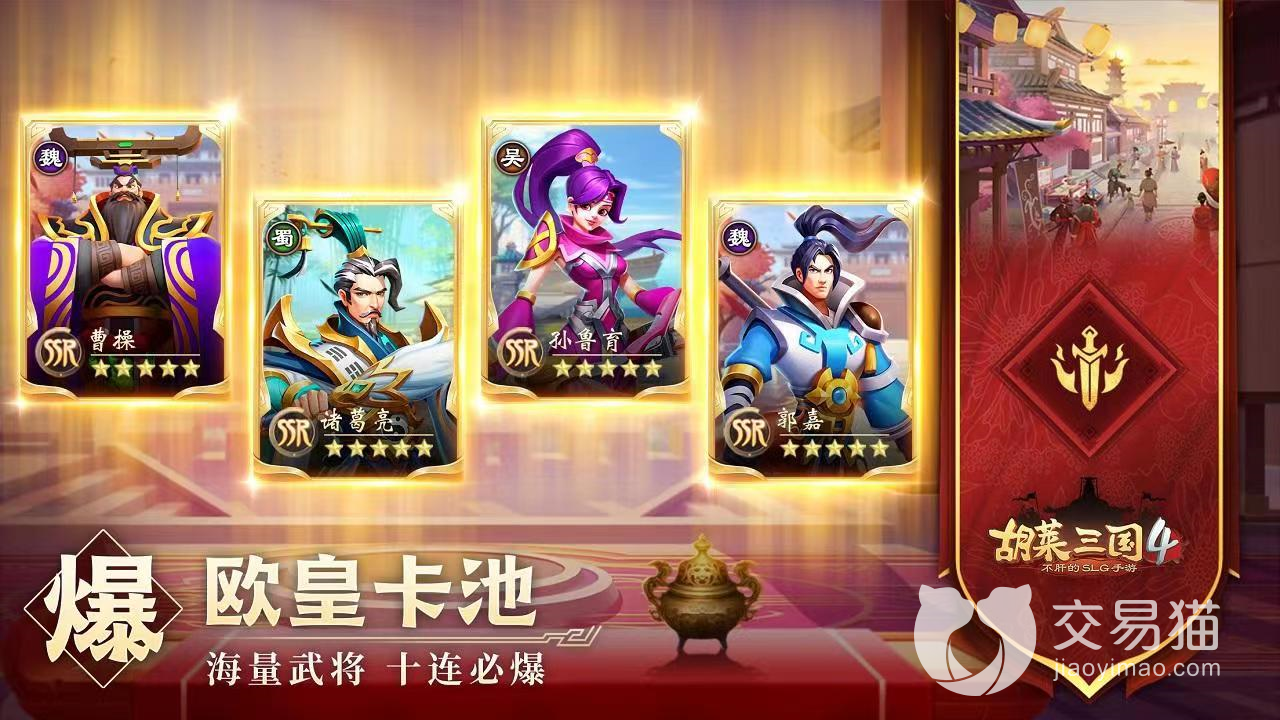 在胡莱三国4中,玩家可以采用挂机铺路的方式轻松度过开荒阶段,然后利用各种兵种之间的克制达到以弱胜强的目的。此外还加入了拍卖、装备交易等自由经济系统,使得社交氛围进一步提升。这里提供的武将在养成方面有非常丰富的内容,而且也讲究策略搭配。当然最精彩的依然是跨服国战等内容,为了能够一步到位体验到这些玩法可以直接去购买成品号。想要自己发展可以去买开局号或其他商品,这些都能在交易猫游戏账号交易平台中轻松买到。