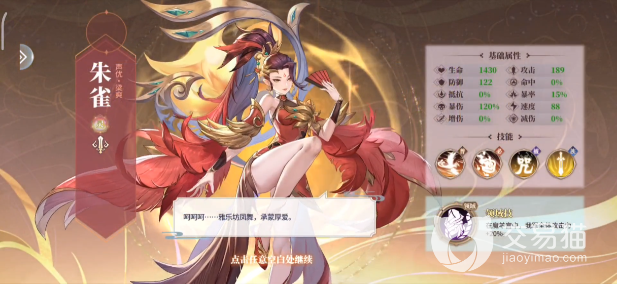 3、朱雀也算是该游戏天梯榜顶端的角色的,因此还是有必要赶上这最后一波限时UP卡池的。