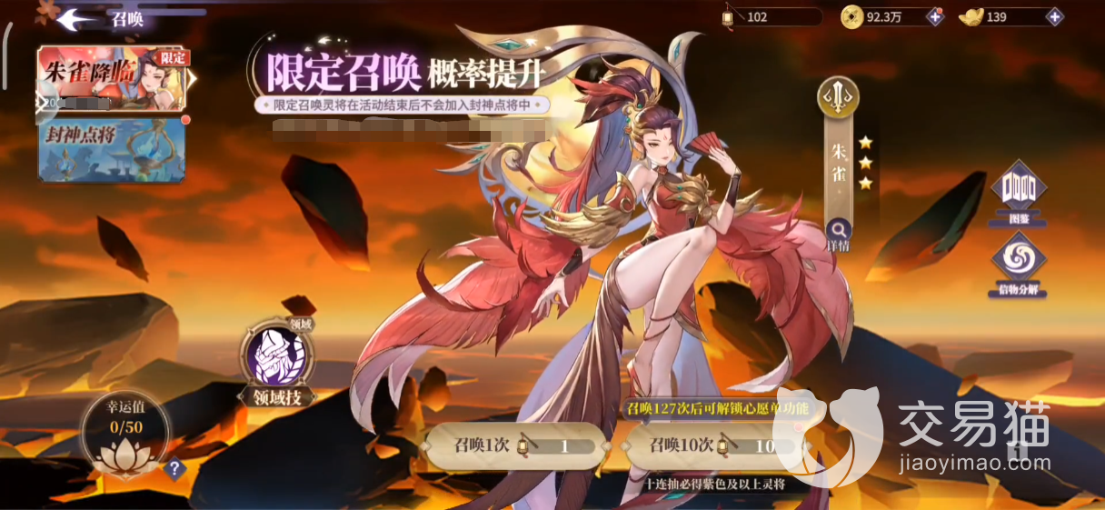 2、目前该游戏的限定UP卡池的角色是【朱雀】,不够朱雀是第一次也是最后一次限定UP卡池的角色了,在其之后将不会再有新的,该功能将被关闭。