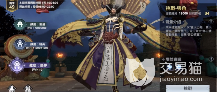 在极无双2的最新更新中,参加国战版本中的国战玩法,可以通过获得奖励国家俸禄宝箱里武将碎片以及神兵碎片来获得张角,张角作为金武将,强度上属于中等偏上,如果你喜欢张角这样的谋士道士角色,可以去打一打国战。
