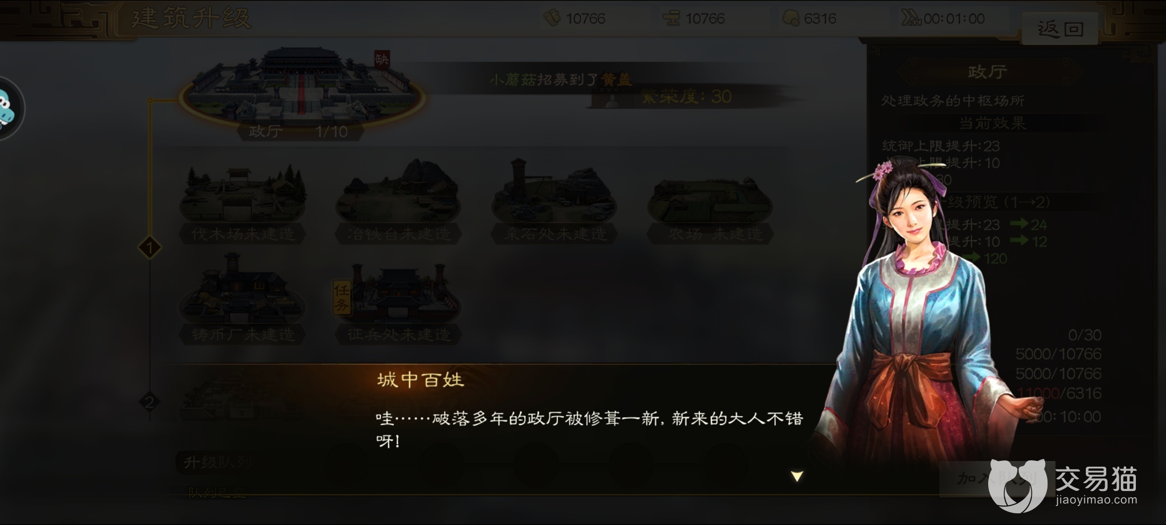 以上就是三国志战棋版政厅功能的所有介绍了,这个设施是玩家主城的基础,后面升级需要花费不少的材料和时间,玩家慢慢修建到后面之后就能成为称霸一方的诸侯。
