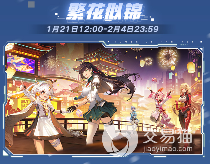 在新春版本中第一个到来的新春活动叫做繁花似锦,本次活动可以通过欣赏烟花表演从而获得礼盒,礼盒内有丰富的奖励,活动将在每日12点到24点整开放,会在白鲸岛、星岛避难所、凉意乐园等地区投放烟花箱,执行者会点燃烟花,每场烟花秀持续30分钟。