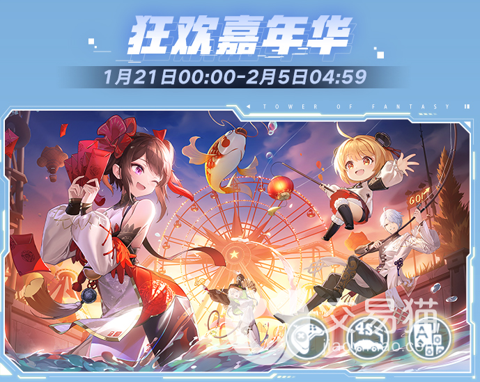 之后就是金钓悬鲤活动,此活动是钓鱼玩法,参加活动有概率钓出锦鲤,锦鲤可以在活动商店兑换奖励,钓到之后还有兔年限定头像框、聊天框等奖励可以拿,锦鲤还可以兑换赤核,最后是签到和嘉年华活动,只要参加就可以领取丰厚的奖励有武器皮肤,饰品、材料等等。