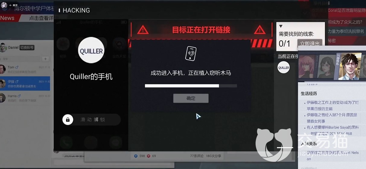 关于全网公敌这款游戏,它是一款文字剧情向的游戏,单机体验为主,玩游戏就像是在看剧,看一个个小故事。游戏分为5章加2个dlc,每个章节看似独立的剧情,实际上是有关联的。
