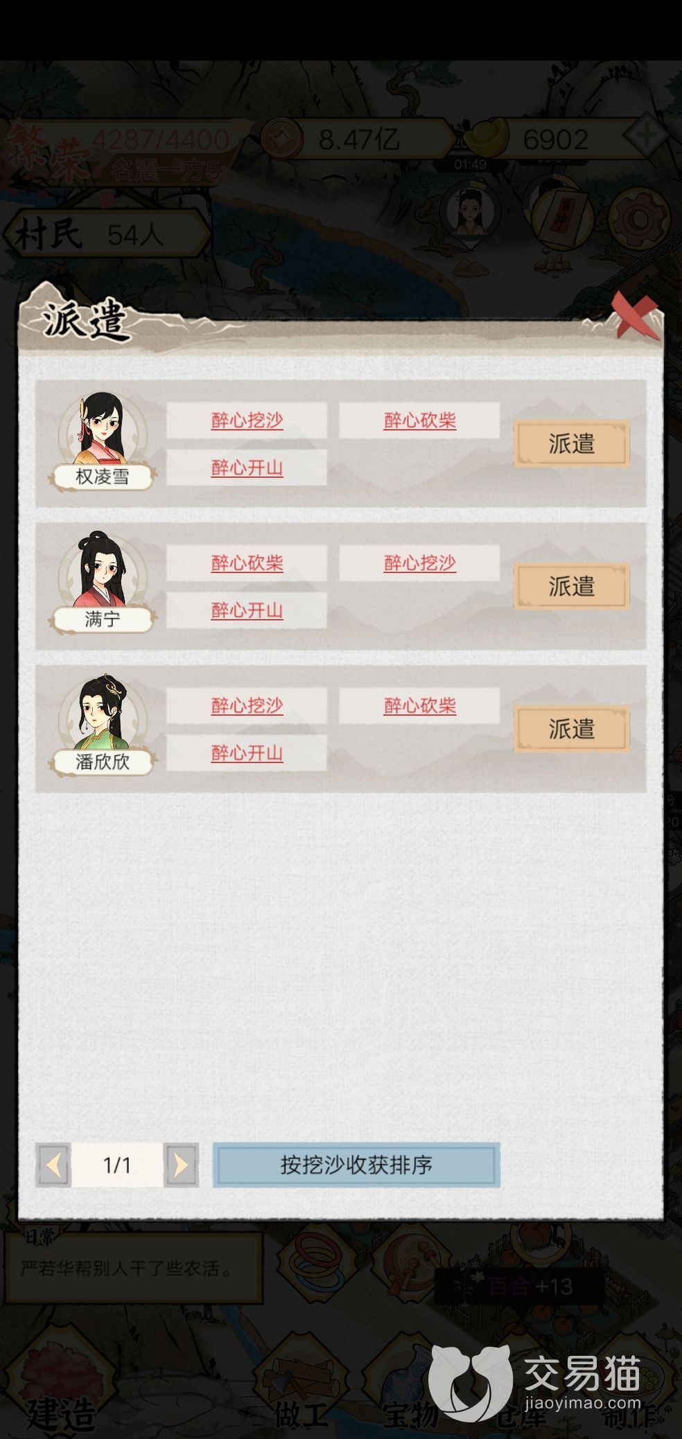 这些外乡人留下来之后,大家可以点击游戏主页最下面一排的第二个做工选项,点击之后来到做工界面再点击下面的一键派遣按钮,让他们去做工,等他们做工回来之后,就能带来更多的收益了。