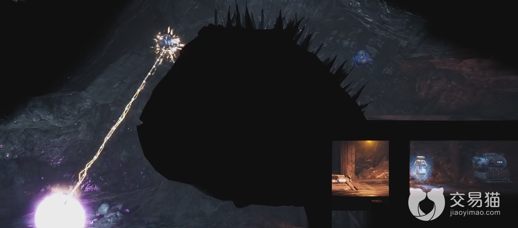 矿洞这边我们一直来到整张地图的右上角这里,这里的路尽头会有个小房间,里面会有元气精粹。不过要注意的时候,这里要跳小心一点,有个荆棘会阻碍我们直接向上跳去的路,我们一定要在空中稍微停留一段时间,调整好方向才去拉下面的锚点,不然有可能直接撞在荆棘上。