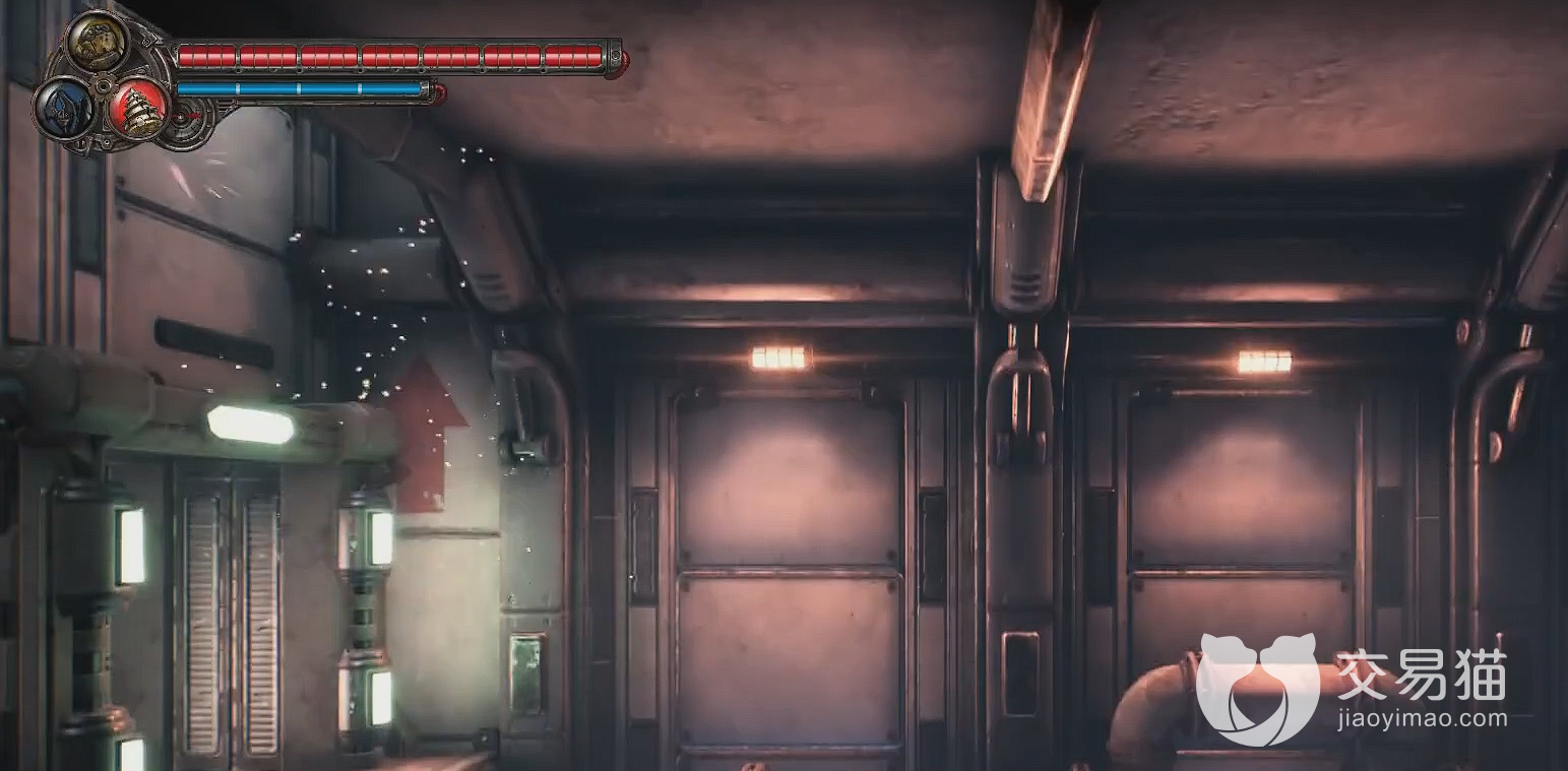 刚来到发电厂的时候,在地下管道一直往下走。在地下工厂中间的保存点,刚出门口的时候,路边会有个明显的向上的红色箭头,只要我们二段跳上去就能找得到。