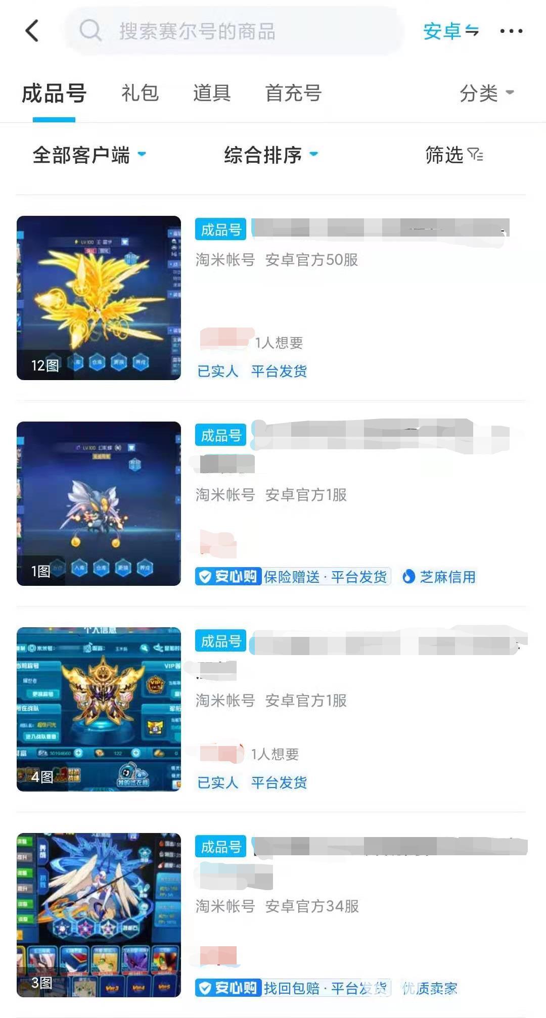搜索游戏名称即可进入交易专区。当挑选赛尔号商品时,用户可以使用分类和筛选等二级功能,屏蔽一些不满足自己需要的无效选项,系统会展现出精准的相符账号。对商品满意的话,买家们就可以点击商品在详情页当中直接下单了。