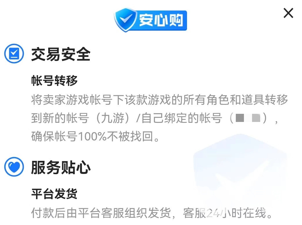 目前在账号交易流程中,最安全的就属于账号转移操作,因为进行这样的交易并没有真正将对方的账号发送过来,而是将账号下面的人物、道具和其他内容转移过来。买家登录的依然是自己的号,在安全性方面就得到了极大的保障,几乎杜绝了出现找回的情况。