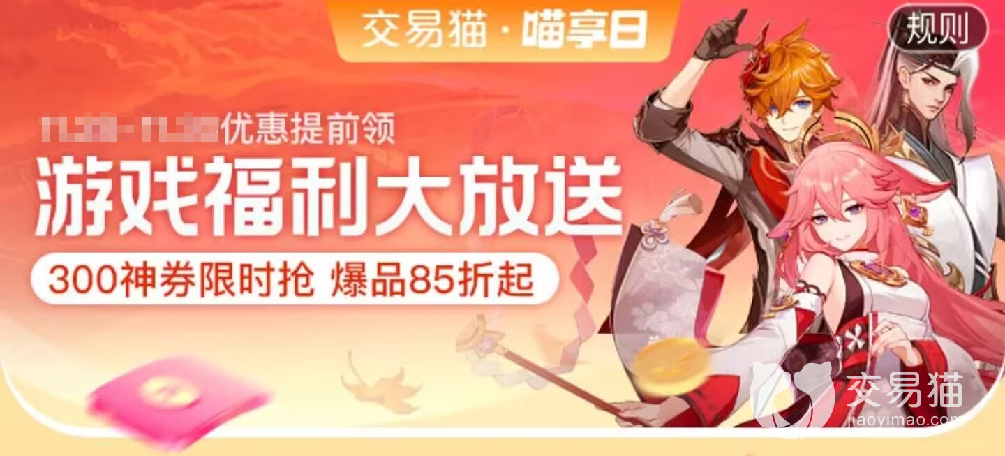 3、如果是单纯的买家,交易猫也有不时的活动,让你能以更实惠的价格买到跑环号,比如喵享日,活动期间可以领到各种满减券,游戏的热门商品也会打折,跑环号正好也是梦幻西游玩家问的比较多,自然也会给予一定优惠。
