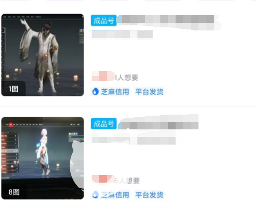 像是永劫无间蝶梦号这种,平台对每一款游戏都设置了专区,蝶梦号就在永劫无间的专区内,只需要在搜索款内搜索游戏名就可以进入到专区,在专区中搜索关键字比如蝶梦号就可以看到大量这种账号,账号还会有成品号、初始号这样的标记,价格也会显示,一看就知道多少钱。