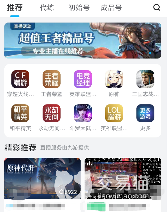 对于喜欢玩游戏的同学来说,平时是不是也有看直播的习惯呢?交易猫里每天都有精彩的直播奉上,且在直播过程中也会出售一些高性价的账号,这些账号一般都是拿出来做活动弄的,所以价格要比专区里面的还便宜,要是想追求高性价比的话,可以没事到直播专区碰碰运气,这里的主播也会对账号进行讲解。