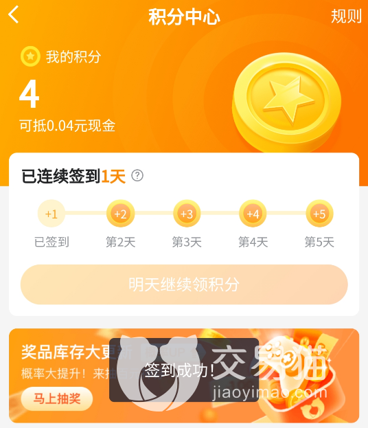 其他交易平台的优惠多半都是以券来抵扣,但交易猫里可用积分去抵扣,每一百积分就能抵扣一块钱,而获得积分的方式就是每日签到,签到之后如果觉得积分过少的话,还可拿积分去转盘抽奖,运气好的话可能就能获得成品号的折扣券,这样一来大家购买自己喜欢账号时就能打折。