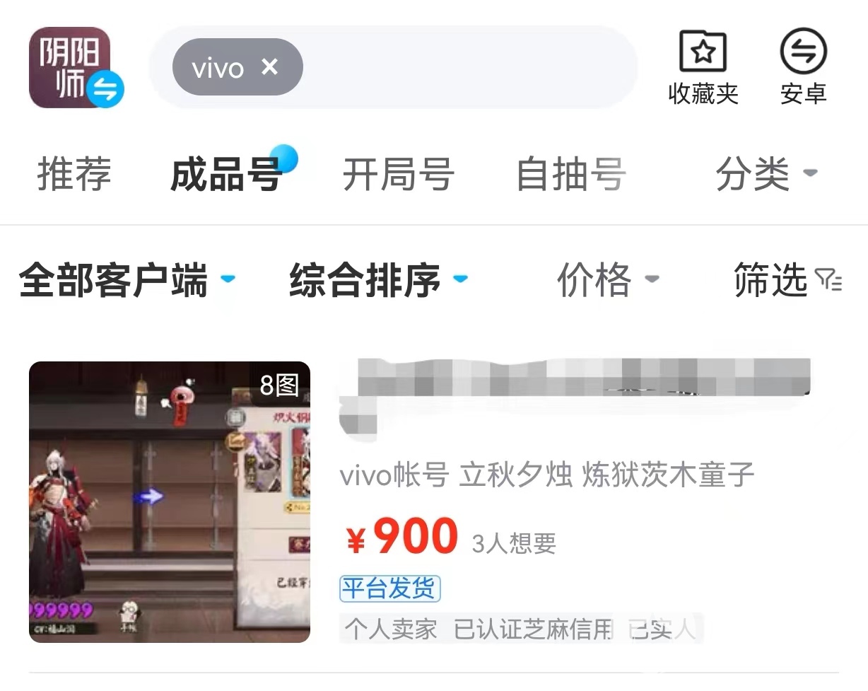 小编就以阴阳师这款游戏进行举例,游戏内的渠道服特别多,vivo账号就是其中一款,阴阳师自带自己游戏内的交易功能藏宝阁,但是vivo账号不能参与,那就只能另选平台了,交易猫就是一个不错的选择,发行至今已经有10年历史了,平台的安全性、实用性、便利性都是行业内相当出色的,平台内包含各类端游、手游、页游,当下热门游戏都包含其中,提供的账号库存充足,几乎能满足所有玩家的需求,新人玩家还能有更高的优惠,低至3折。