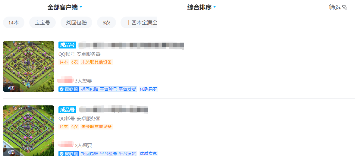 所以想要对自己游戏账号完成估价的话,根本不用找所谓的部落冲突账号估价器,外面收费麻烦不说,给出的价格还不一定靠谱,这里都是在买卖号的小伙伴,对每个账号的价格肯定都很了解,大家完全能用来参考呀。