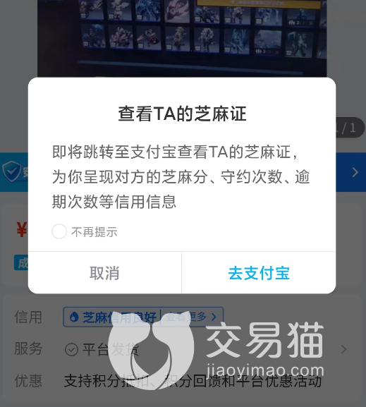 信用社会当中个人信息都尤为重要,成为交易猫商家同样也得完成实名认证,这样买家能看到大概情况也会觉得安心,其中芝麻信用分虽然是支付宝的特色,但在交易猫里能直接跳转支付宝一键查看,因为这两款APP都隶属于阿里巴巴旗下。